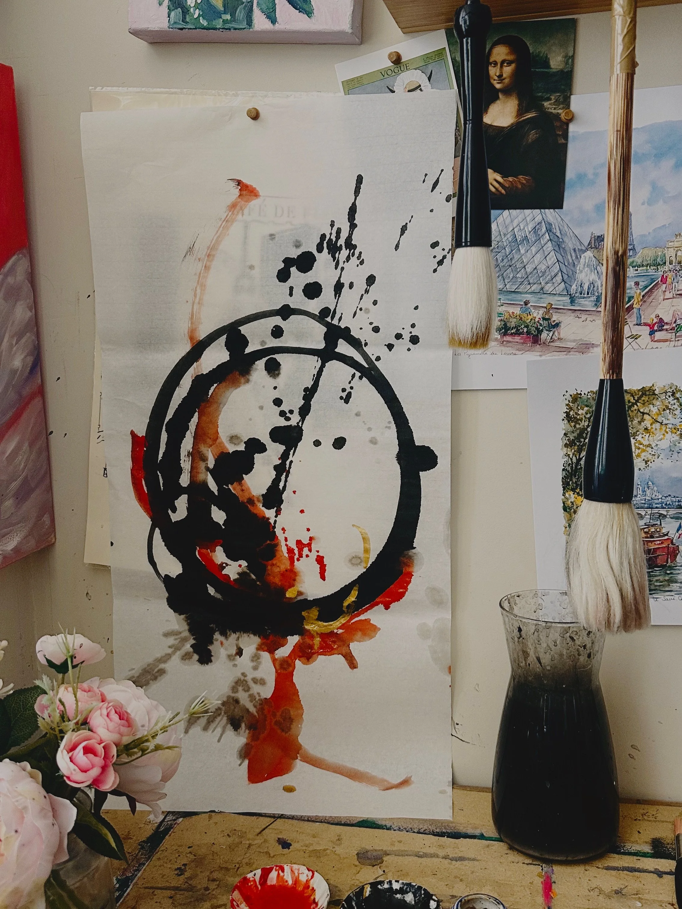 Mosslight creates abstract landscapes rooted in memory and atmosphere, and is developing Muji Sho (無字書) - an emerging practice of wordless calligraphy where breath, body, and ink move beyond language.